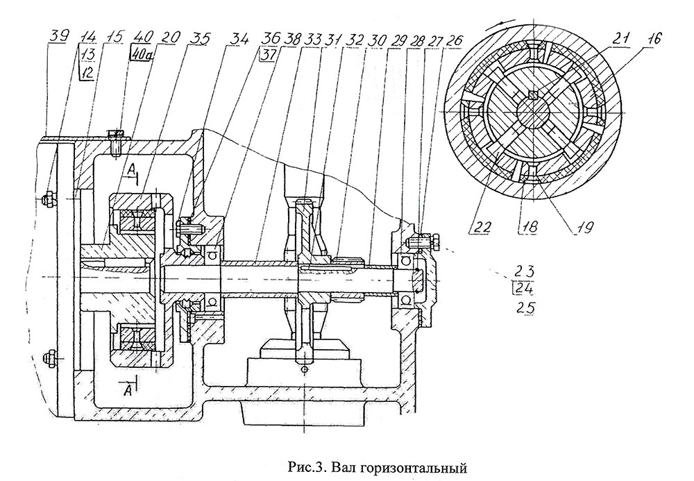 12 Гайка М10 ГОСТ 5915-70, 13 Шайба 10 ГОСТ 6402-70, 14 Шпилька М10x25 (12/18) ГОСТ 22034-76, 15 Электродвигатель АИР 80B4 1.50 кВт 1500 об/мин, 16 Грузик ОМ-1 40.120, 18 Накладка ОМ-1 20.012, 19 Заклепка 4x16.37, 20 Полумуфта ОМ-1 20.060 в сборе, 21 Шпонка 6x6x32, 22 Штифт специальный Ж5-СОМ-3-Ю00 01.028, 23 Болт М6х20, 24 Шайба 6 ГОСТ 6402-70, 25 Крышка ОМ-1 20.106, 26 Прокладка Ж5-ОМЕ-С 01.006-42, 27 Кольцо Ж5-МУ-1 01.118-01, 28 Подшипник 203, 29 Втулка ОМ-1 20.617, 30 Втулка ОМ-1 20.616, 31 Шестерня ОМ-1 20.070, 32 Шпонка 2-5x5x32, 33 Втулка ОМ-1 20.618, 34 Болт М6х20, 35 Вал ОМ-1 20.050 в сборе, 36 Крышка ОМ-1 20.007, 37 Прокладка ОМ-1 20.008, 38 Подшипник 204, 39 Кожух ОМ-1 40.404, 40 Болт М6 х 16 ГОСТ 7798-70