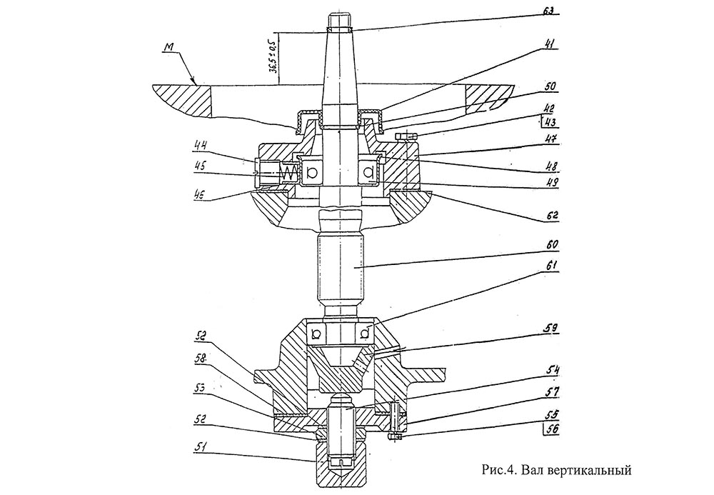 41 Крышка Ж5-СОМ-3-Ю00 01.031, 42 Болт М8х45, 43 Шайба 8 ГОСТ 6402-70, 44 Винт Ж5-СОМ-3-1000 01.054, 45 Пружина Ж5-СОМ-3-ЮОО 01.053, 46 Стаканчик Ж5-СОМ-3-ЮОО 01.055, 47 Корпус горловой опоры Ж5-СОМ-3-ЮОО 01.051, 48 Обойма Ж5-СОМ-3-Ю00 01.052, 49 Подшипник 6-205, 50 Кольцо Ж5-СОМ-3-1000 01.026, 51 Гайка колпачковая Ж5-ОСБ 01.011, 52 Прокладка Ж5-ОСБ 01.009, 53 Гайка специальная Ж5-ОСБ 01.006, 54 Винт подпятника Ж5-ОСБ 01.005, 55 Болт М6х20 , 56 Шайба 6 ГОСТ 6402-70, 57 Крышка Ж5-ОСБ 01.004, 58 Прокладка Ж5-ОМЕ-С 01.006-43, 59 Упор Ж5-ОСБ 01.007, 60 Веретено ОМ-1 20.601, 61 Подшипник 6-46204Е , 62 Прокладка Ж5-ОМЕ-С 01.006-44, 63 Прокладка ОМ-1 40.417