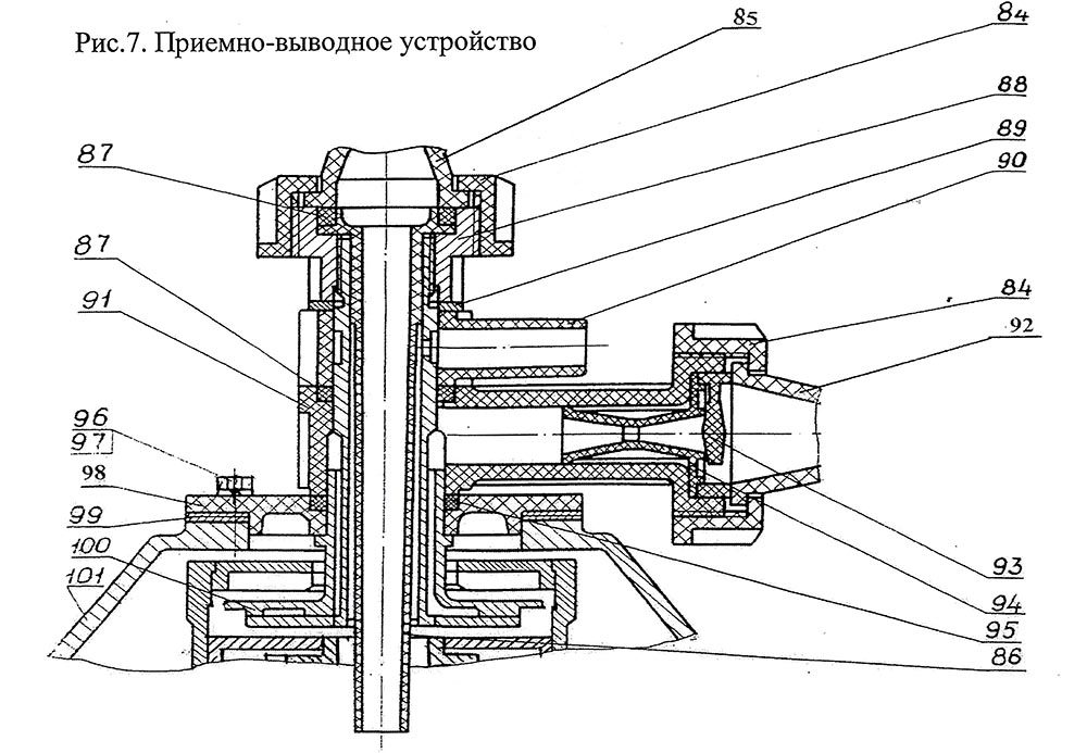 84 Гайка ОМ-1 40.314, 85 Патрубок ОМ-1 40.008, 86 Труба ОМ-1 40.006, 87 Прокладка ОМ-1 40.002, 88 Гайка ОМ-1 40.316, 89 Шайба ОМ-1 40.413 , 90 Стакан ОМ-1 40.005, 91 Тройник ОМ-1 40.007, 92 Патрубок НМУ 00.001, 93 Клапан НМУ 01.002, 94 Дроссель ОМ-1 40.004, 95 Прокладка Ж5-ОСП-3 03.004, 96 Болт М6 х 16.23 , 97 Шайба 6 ГОСТ 6402-70, 98 Фланец ОМ-1 01.413, 99 Прокладка ОМ-1 01.412, 100 Диск (совместно с трубой ОМ-1 40.080) ОМ-1 40.160, 101 Крышка ОМ-1 01.015